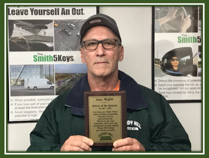 Congratulate Gary Moffit for earning the (Driver of the 1st Quarter) 2023. Gary in the Green Windy Hill Jacket, is recognized by Windy Hill Foliage, Inc. Gary represent Windy Hill as a “Carrier of Choice”. Thank you, Gary, for your outstanding performance here at Windy Hill.